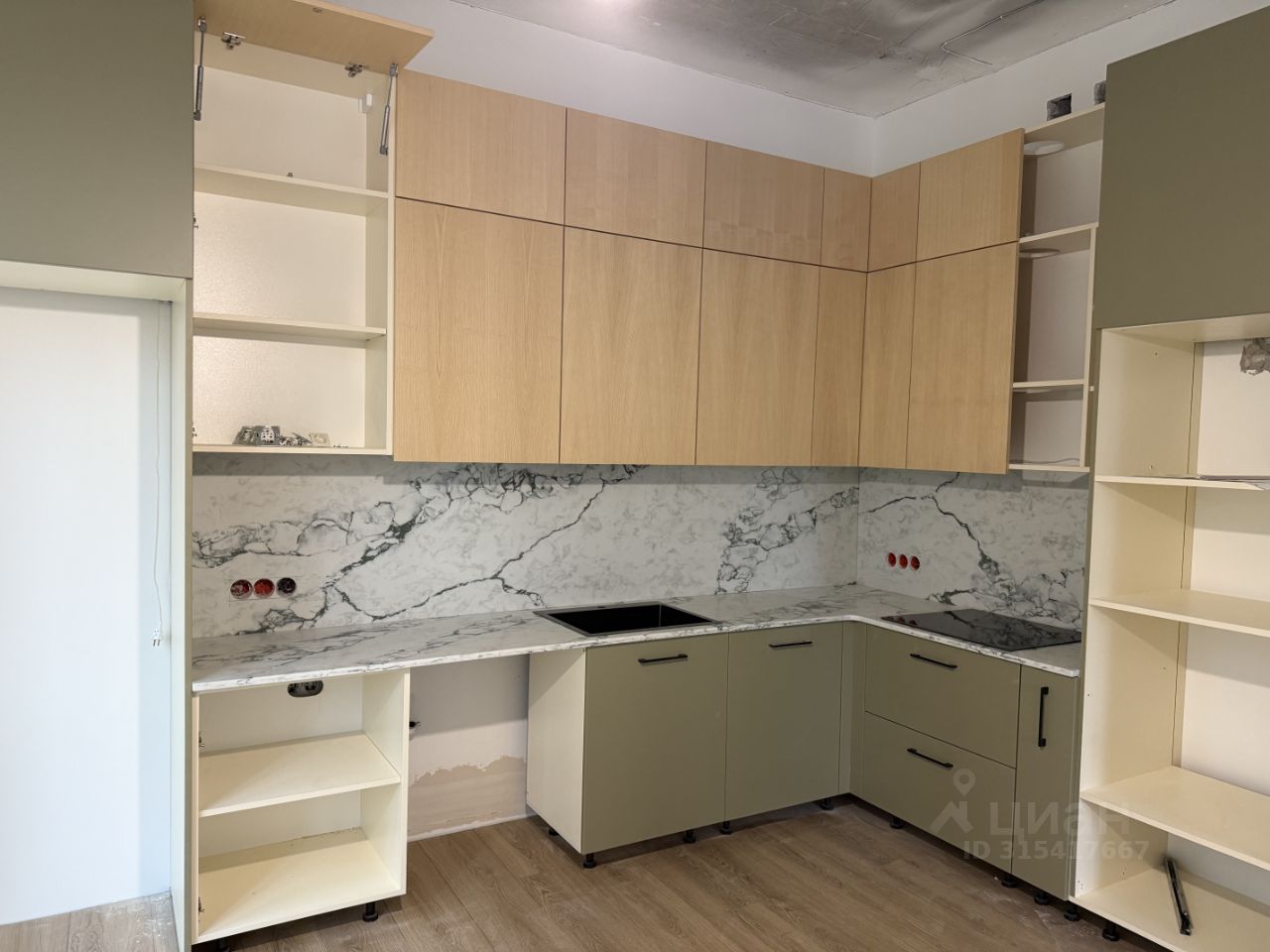 1) Была установлена столешница и фартук из кварцевого агломерата на кухню