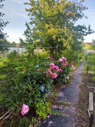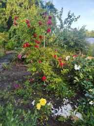— Множество розовых кустов, плодовых деревьев и кустарников — яблони, вишни, смородина, несколько делянок с ранней и поздней малиной, клубника и вкуснейший виноград. Цветы-многолетники.