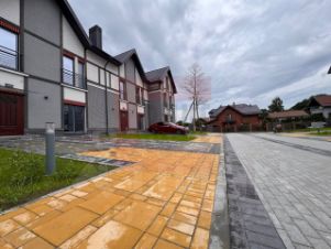 Таунхаус расположен на земельном участке 2.77 сотки в собственности. Территория комплекса полностью огорожена, выполнено мощение дорожек и тротуаров, установлено уличное освещение и проведено озеленение.