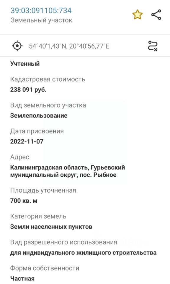 Кадастровый номер участка 39:03:091105:*** указал продавец