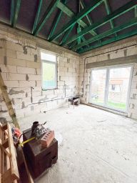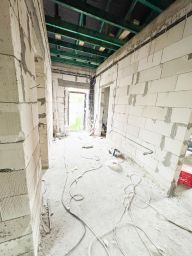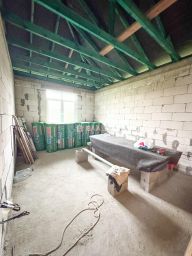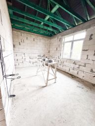Это одноэтажное блочное здание с деревянными перекрытиями и высокими потолками (3,1 м). Площадь дома — 100 кв. м, участка — 4,3 соток. Здесь три комнаты, совмещённый санузел. Дом без отделки, но благодаря свободной планировке вы сможете создать интерьер по своему вкусу.