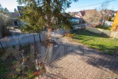 На участке высажены розы, фруктовые деревья, на заднем дворе имеется теплица.