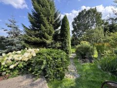 Участок 25 соток с великолепным ландшафтным дизайном структурирован: огород, декоративная зона, фруктовый сад.