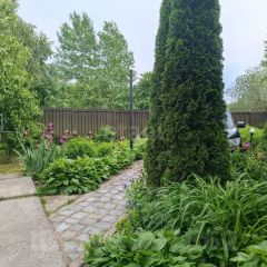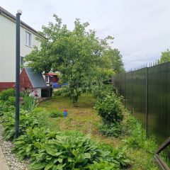 Участок огорожен кованным забором с поликарбонатом, что гарантирует вам максимальную безопасность и уединение.
