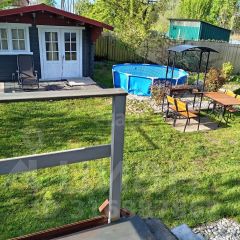 На территории расположен летний домик площадью 16 кв. м., который идеально подойдет для отдыха или хранения вещей.