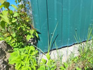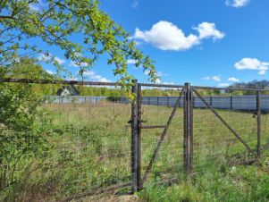Участок огорожен по всему периметру забором из металлопрофиля и сетки . Фундамент ленточный ж\б.