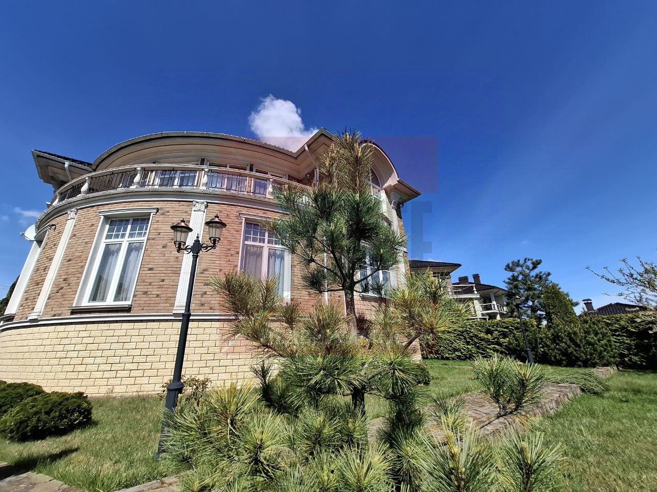 Дом находится в коттеджном комплексе с огороженной территорией. Охрана на въезде и видеонаблюдение создают защищённость комплекса. Вся территория комплекса вымощена мелкой брусчаткой.