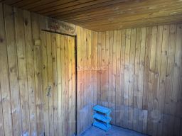 На участке площадью 12 соток есть недостроенный гараж на две машины и шикарная баня.