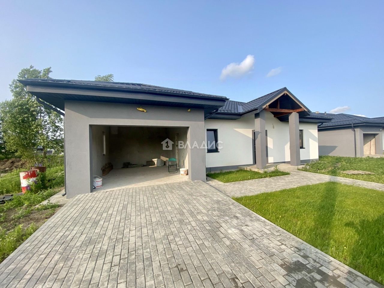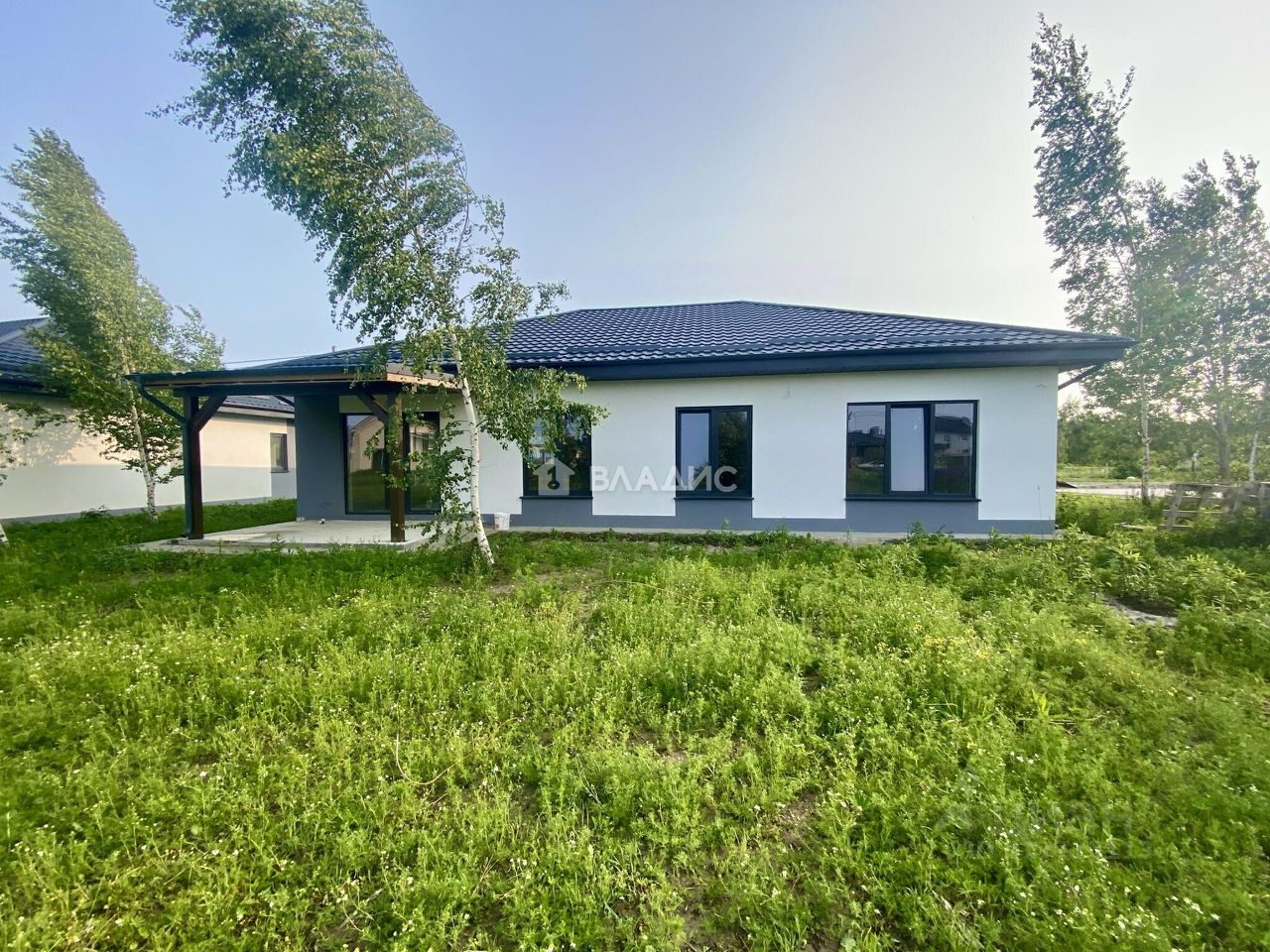 Продается современный одноэтажный дом 169.1 м² (участок 9 соток) в сером ключе с гаражом, пос. Холмогоровка.