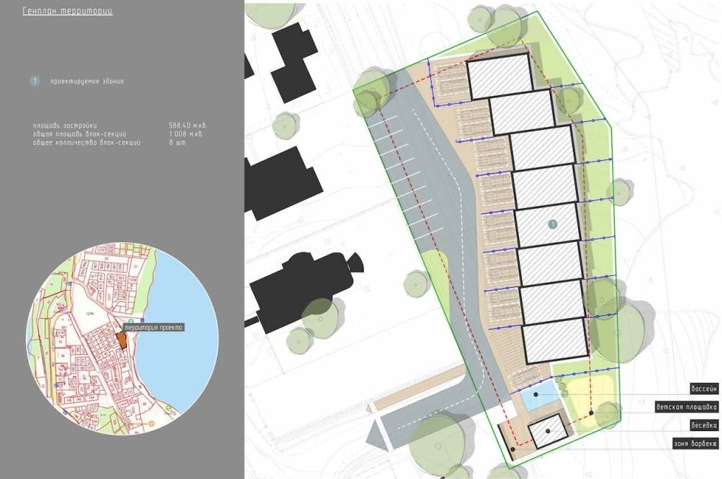ГПЗУ получены, возможно строительство дома до 3 эт или блок-секций, также возможен перевод участка под строительство гостиницы или гостевого дома.