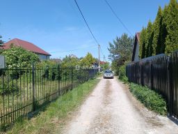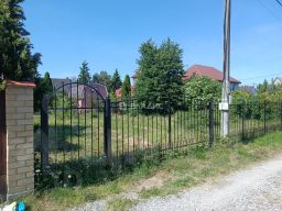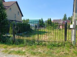 - огорожен с трех сторон сеткой-рабицей, со стороны улицы - новый кованый забор на ленточном фундаменте с воротами и калиткой