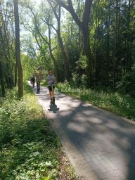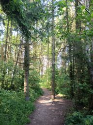 - через лес ведет тропинка из плитки и новый деревянный променад. В конце - оборудованный спуск