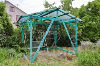 Участок площадью 6 соток благоустроен: имеются беседка, теплица, плодовые деревья и кустарники, цветники, что добавляет уютной атмосферы загородной жизни, удобства и функциональности.