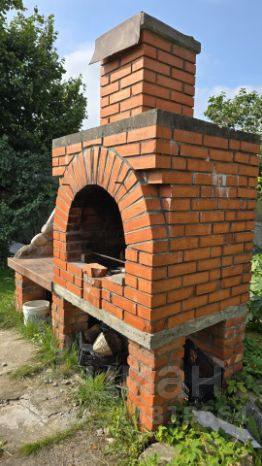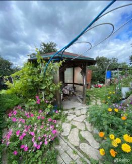 На участке стоит стационарная теплица и беседка для барбекю.