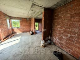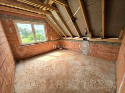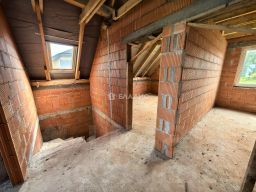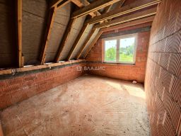 Дом построен в 2020 году из красного керамического кирпича, перекрытия — железобетонные плиты, крыша керамическая черепица. Высота потолков — 3 метра, что создаёт ощущение простора и свободы. В доме четыре комнаты, общая жилая площадь — 57 кв. м, площадь кухни — 18 кв. м. Три спальни площадью 18, 12 и 15 кв. м и одна комната площадью 12 кв. м, которую можно использовать как по своему усмотрению. Есть один раздельный и два совмещённых санузла.