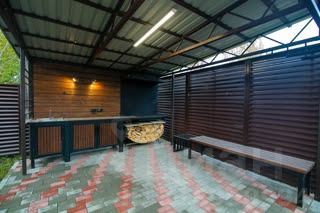 На ПЕРВОМ этаже расположены кухня-гостиная с выходом во внутренний дворик, холл и совмещенный санузел, высота потолка 3.1 метра.