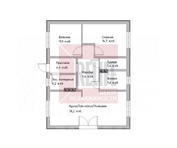 В доме просторная кухня - гостиная площадью 30,2 м²