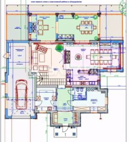 •Дом: Двухэтажный дом с высоким "вторым светом" в кухне-гостиной, создающим ощущение простора и света.