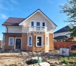 Общая площадь дома — 140 квадратных метров, из которых 57 квадратных метров приходится на жилую площадь. Три комнаты на втором этаже и 1 комната и кухня-гостиная площадью 25 квадратных метров на первом этаже позволят комфортно разместиться всей семье. Два совмещённых санузла и один балкон добавляют удобства и функциональности