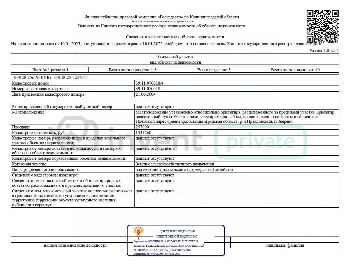В собственности. Земли сельхохназначения. 39:11:070018:4 кадастровый.