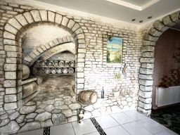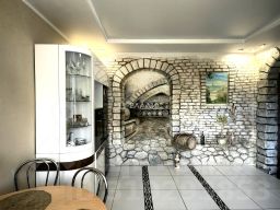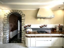1 ЭТАЖ: Кухня (встроенная мебель/техника), просторный зал с камином (атмосфера уюта!), комната, санузел. Уникальные элементы: две авторские фрески, элегантная арка из натурального дерева. Отделка: декоративная штукатурка, фигурные потолки (ГКЛ), теплый пол.