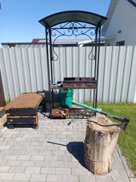 - зона отдыха: беседка + крытый мангал + костровая зона (4 кресла, столики и очаг)