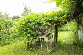 Участок — 9.5 соток, дом разделен на две равные части, одна из которых выставляется на продажу.