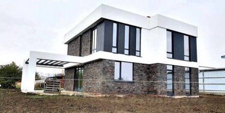 Дом строится из качественного керамического блока. На первом этаже система теплого пола (три контура: кухня, коридор +с/у). По дому выполнена разводка всех коммуникаций. В доме сделана утеплённая выравнивающая стяжка пола. Отделка в сером ключе, входная сейф-дверь с защитой от взлома, стены оштукатурены и выровнены под финишную отделку, установлены энергосберегающие пятикамерные стеклопакеты.