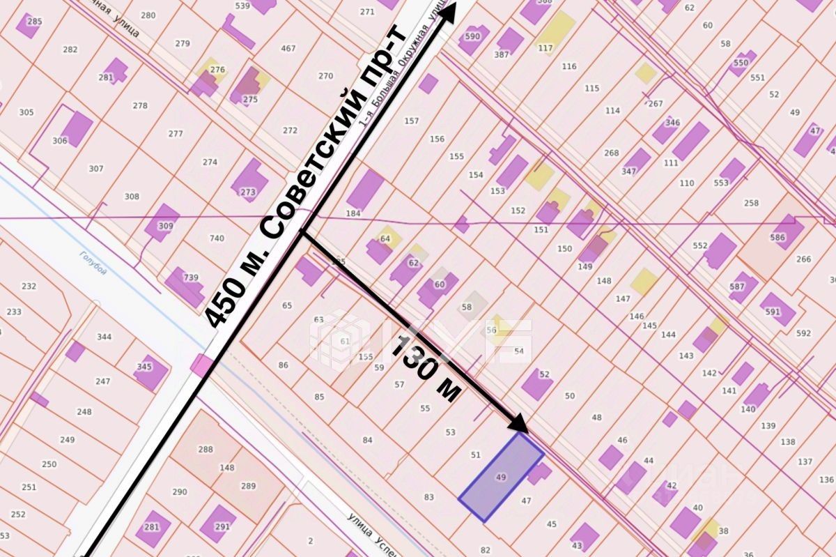 Участок находится на территории СНТ "Дружба" в Центральном районе г. Калининграда. Адрес: Калининградская обл, г о "Город Калининград", г Калининград, ул Ломоносова, тер СНТ "Дружба", ул Западная, 49. К участку можно заехать с улицы ул. 1 ая Большая Окружная.