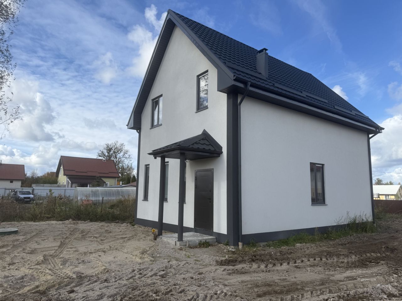 Дом полностью готов к внутренней отделке и проживанию. В данный момент идут внешние дренажные работы.