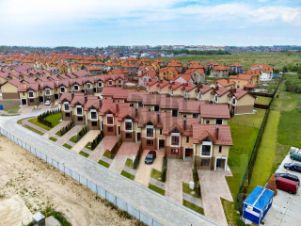 Таунхаусы возведены из газосиликатного блока.