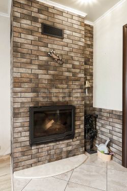 Просторная кухня-гостиная с камином Jtul сердце дома