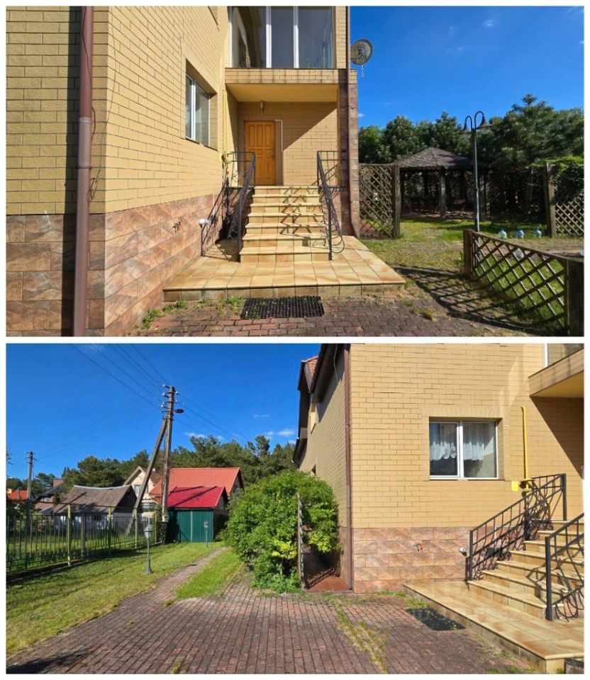Дом расположен на благоустроенных 3-х земельных участках, общей площадью 1352 м2 Отдельно от придомовой территории, по соседству, имеется четвертый участок с плодовым садом, площадь сада=441,7 м2