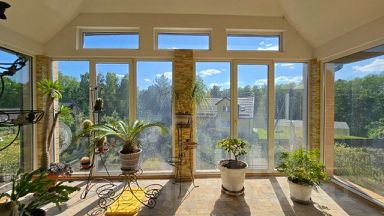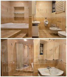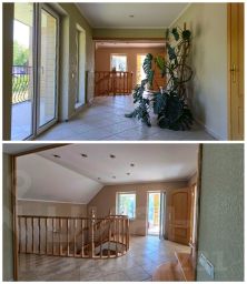 На втором этаже три спальни, просторный холл, с выходом на остекленную веранду (зимний сад), большая лоджия, совмещенный санузел.