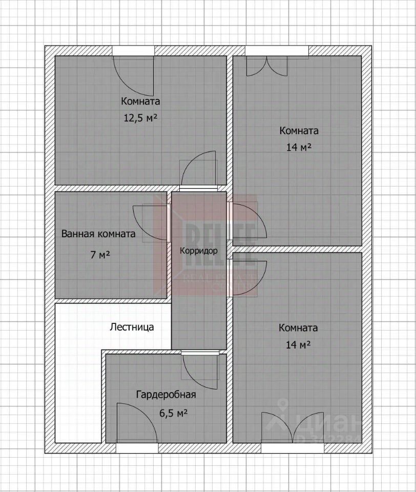 2-й этаж: три просторные спальни 12.5 кв. м, 14 кв. м и 14 кв. м, гардеробная 6.5 кв. м,
