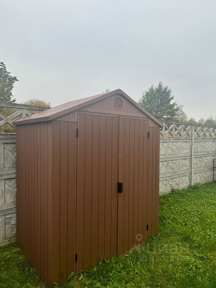 Посажены деревья и зеленый газон. А также гараж-домик для инструментов.