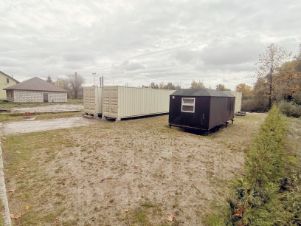 Морские контейнеры на фото установлены в проектное положение, можно начинать строительство из них (залить ленточный фундамент и т.д.). Также можно подержать контейнеры на удорожание, на соседнем участке и позже продать. Контейнеры новые, 2022г.в.