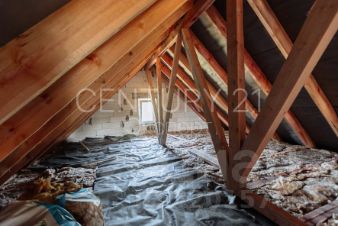 Кровля из металл черепицы Монтеррей RАL 8017 0,5 мм Роlyеstеr Маtt (Южная Корея). Строительная система из бруса 200*50, перекрытие тоже из него. Утепление перекрытия 200мм из мин. ваты Кnаuf . Есть лестница на чердак;
