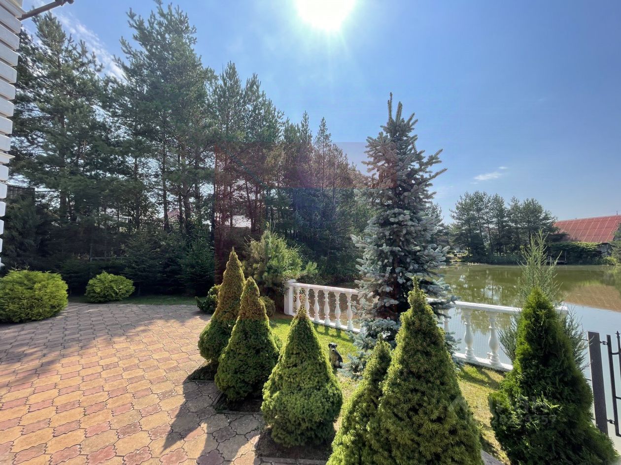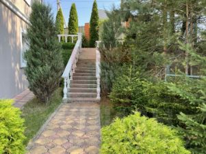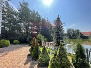 Дом расположен на земельной участке 19 соток в собственности. На придомовой территории обустроены зоны отдыха для барбекю, банный комплекс, высажены вечнозеленые деревья и кустарники, образующие полноценный парк.