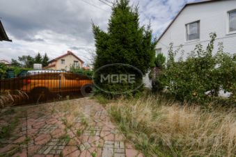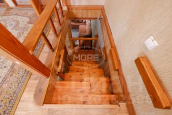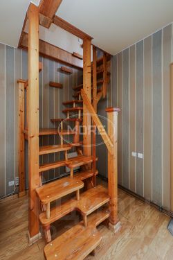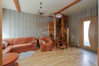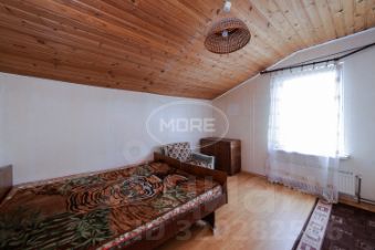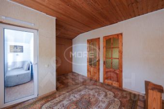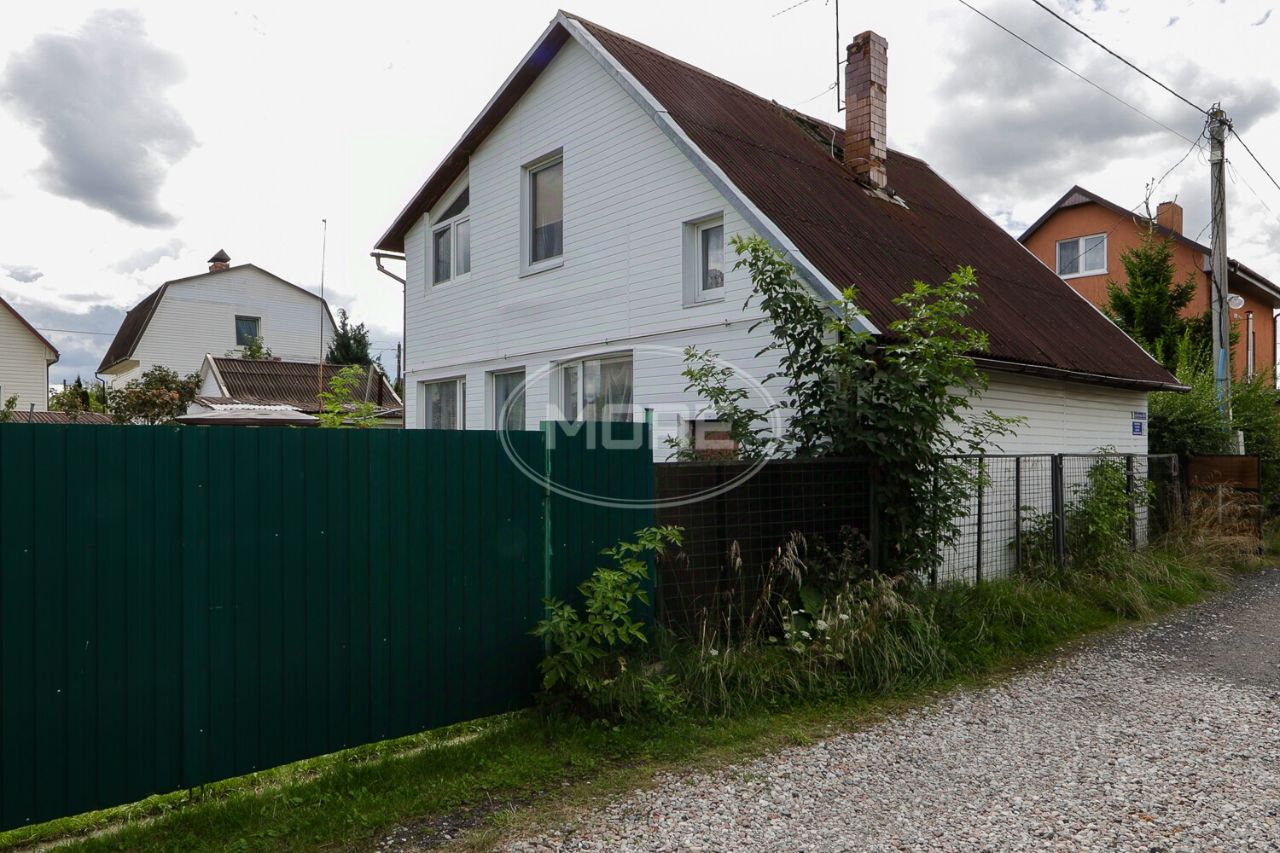 Общая площадь дома — 115 кв. м, два этажа. На первом этаже кухня, гостиная, на втором три спальни, веранд, санузел. На участке баня, зона барбекю, стоянка на две машины, сад.
