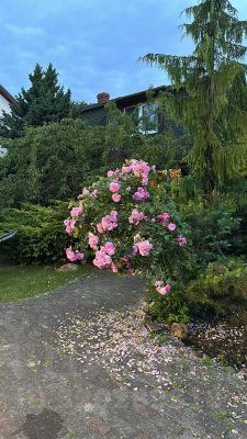 Участок огорожен забором, откатные кованые ворота, парковка на 4 автомобиля. Участок полностью засажен плодовыми деревьями, кустарниками и декоративными растениями. Дорожки выложены тротуарной плиткой. Цветущая территория с разнообразными растениями, гортензиями, розами и другими растениями создают атмосферу уюта и природной красоты.