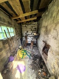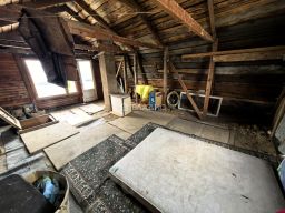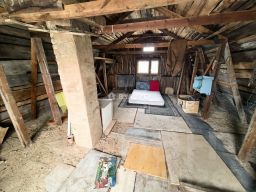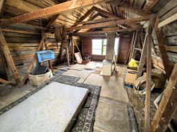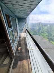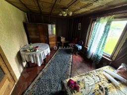 Этот двухэтажный дом, построенный в 1990 году, имеет общую площадь 75 кв. м и включает в себя две комнаты (12 кв. м и 14 кв. м), кухню площадью 7 кв. м и раздельный санузел. Высота потолков 2,7 м создаёт ощущение простора. Дом построен из бревна, перекрытия деревянные, кровля — шифер. Отопление печное, водоснабжение от колодца, есть электричество.