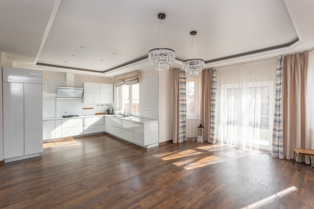 На первом этаже располагается просторная кухня-гостиная со встроенной техникой премиум класса, с кладовым помещением и сан.узлом.