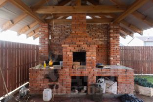 На территории дома баня на дровах, хоз. постройка, зона барбекю.
