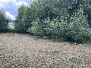 На участке есть взрослые деревья . Есть кусты, которые легко можно скосить и расчистить площадку под ваш Дом.