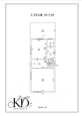 1 этаж: Просторный холл (11,4 м²), ОГРОМНАЯ функциональная кухня (18,8 м²), Светлая гостиная-студия 34 м² (квадрат!), котельная, санузел (6,9 м²) и ВЕЛИКОЛЕПНАЯ терраса 26 м²!