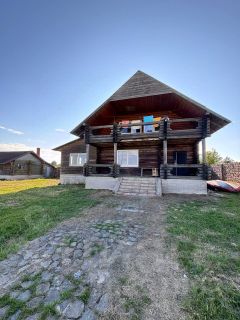 Дом на монолитном ленточном фундаменте из оцилиндрованных бревен диаметром 220 мм. 1 этаж- 106 кв.м, кухня-зал 52кв.м, гостиная 35 кв.м, терраса 17 кв.м, котельная (установлен твердотопливный котел длительного горения STROPUVA, газовая колонка на горячую воду, газгольдер на 500л), высота потолков 2,6м, 2 этаж- 4 спальни, сан. узел; балкон 17кв.м. На первом этаже по центру зала установлен дымоход для камина. В доме остается мебель, бытовая техника.