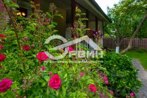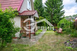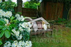 На участке - парковочное место, красивый газон, рододендроны, хвойные растения, плодовые деревья. Есть отдельное место для хранения дачного инвентаря.