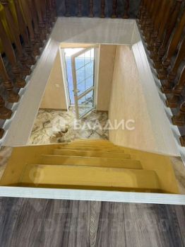 Монолитная лестница, ведущая на второй этаж, изготовлена из дерева лиственных пород.