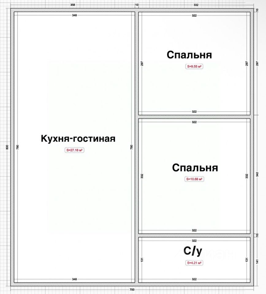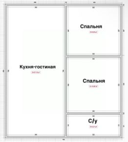 Планировка: кухня-гостиная, две спальни, совмещенный санузел.